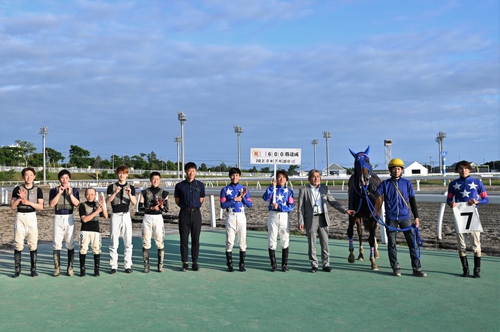 阿部龍騎手600勝達成 その他 2020.07.28 7月28日(火)、門別競馬 第7競走で阿部 龍(あべ りゅう)騎手(角川 秀樹きゅう舎所属)がスティールアンジュに騎乗し4,567戦目で600勝を達成しました。