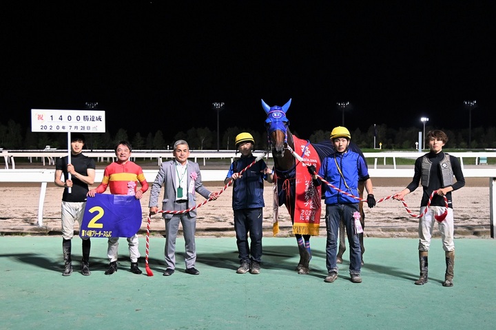 7月28日(火)、門別競馬 第12Rでブライトフラッグが1着となり、管理する角川秀樹調教師は1,400勝(8,485出走)を達成しました。