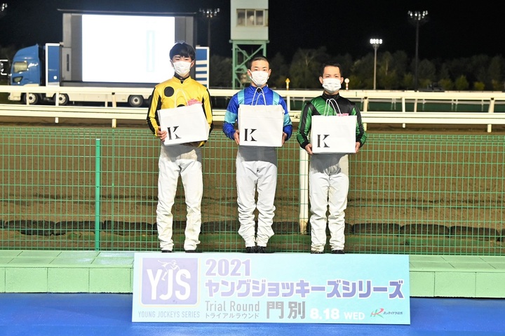 本日(8月18日〔水〕)、門別競馬場において『2021ヤングジョッキーズシリーズ トライアルラウンド門別』を実施いたしました。第1戦はカツゲキダイリンに騎乗した山田敬士騎手(JRA美浦所属)が、第2戦はウィシュワールドに騎乗した秋山稔樹騎手(JRA美浦所属)がそれぞれ優勝しました。
