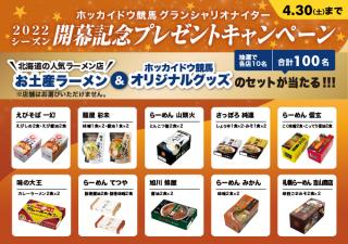 2022年度のホッカイドウ競馬が4月13日(水)に開幕することを記念し、北海道内の人気ラーメン店のお土産ラーメンとホッカイドウ競馬オリジナルグッズのセットが、抽選で100名様に当たるプレゼントキャンペーンを実施いたします。ご希望の方は郵便番号・住所・氏名・年齢・電話番号・職業を記入のうえ、Eメールでご応募ください。キャンペーンの詳細については、以下のとおりです。皆様のご応募お待ちしております。