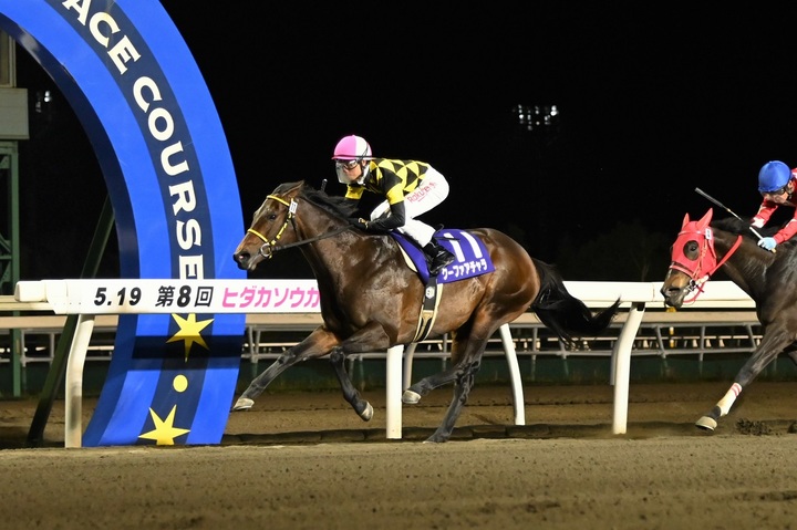 また、同馬を管理する田中淳司調教師はヒダカソウカップ2勝目、騎乗した落合玄太騎手はヒダカソウカップ初勝利となりました。