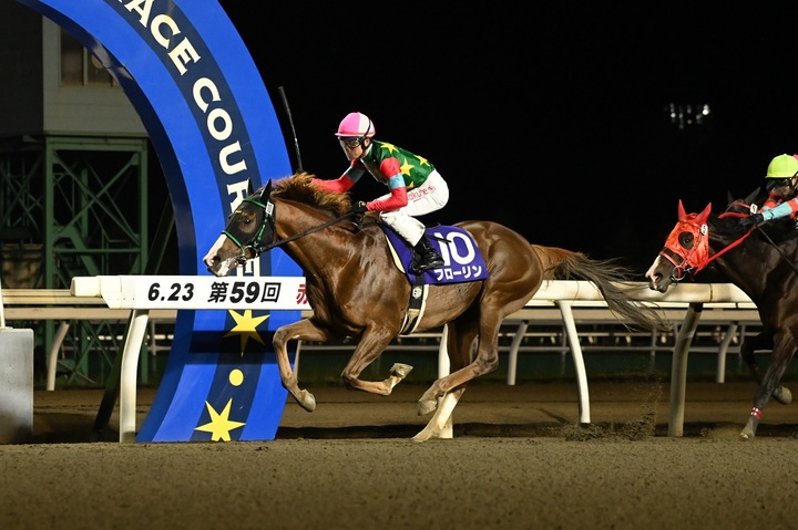 本日のメイン競走、楽天競馬杯 第59回 赤レンガ記念〔H2〕(マインドユアビスケッツ賞)[ダート2,000m(外) 曇・稍重]が行われ、4番人気フローリンが2着トレイントレインに11/2馬身差をつけて優勝しました(タイム:2.11.6)。