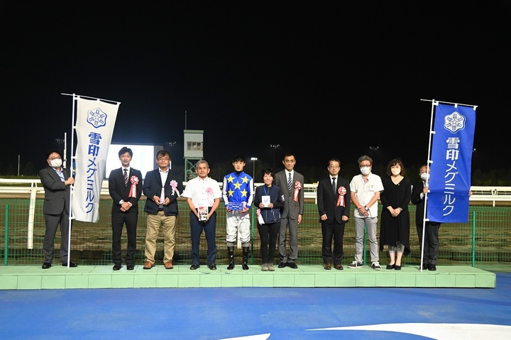 また、同馬を管理する角川秀樹調教師と騎乗した桑村真明騎手はともにグランシャリオ門別スプリント3勝目(桑村真明騎手は本競走最多勝利騎手)となりました。