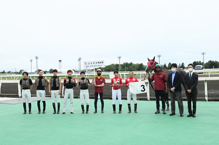 五十嵐冬樹騎手2,500勝達成 その他 2022.08.10 8月10日(水)、門別競馬 第1競走で五十嵐 冬樹(いがらし ふゆき)騎手(川島 洋人きゅう舎所属)がヴァイスホルンに騎乗し16,131戦目で2,500勝を達成しました。