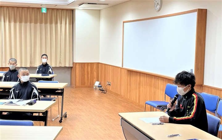 落合 玄太騎手が地方競馬教養センターでホッカイドウ競馬のPR活動を実施 その他 2022.12.06 12月5日(月)、本年度のホッカイドウ競馬リーディング騎手を獲得した落合 玄太騎手が、地方競馬教養センターに来所し、第105期騎手候補生にホッカイドウ競馬のPR活動を実施しました。 落合騎手と職員からホッカイドウ競馬の魅力等を説明した後は、騎手候補生達からの質問に答え、最後に騎乗フォーム等の確認を木馬を使って指導する場面もあり、騎手候補生達との貴重な時間を過ごしました。