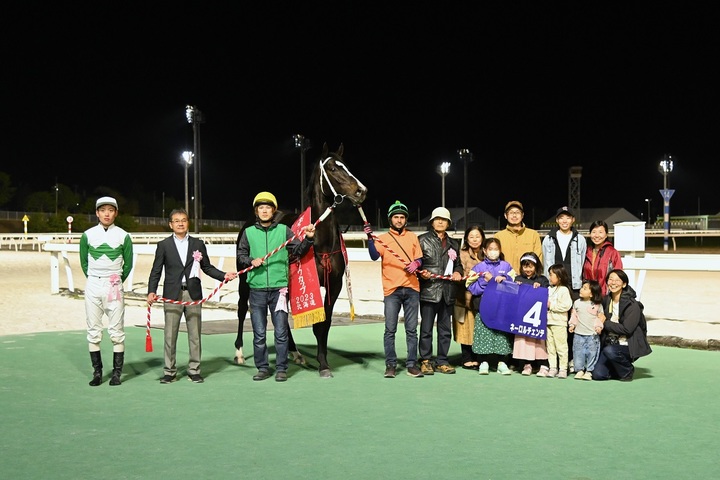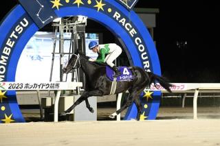 本日のメイン競走、AIRDO賞 第9回 ヒダカソウカップ〔H3〕(マジェスティックウォリアー賞)[ダート1,600m(内) 晴・良]が行われ、5番人気ネーロルチェンテが2着クーファアチャラに2馬身差をつけて優勝しました(タイム:1.42.6)。