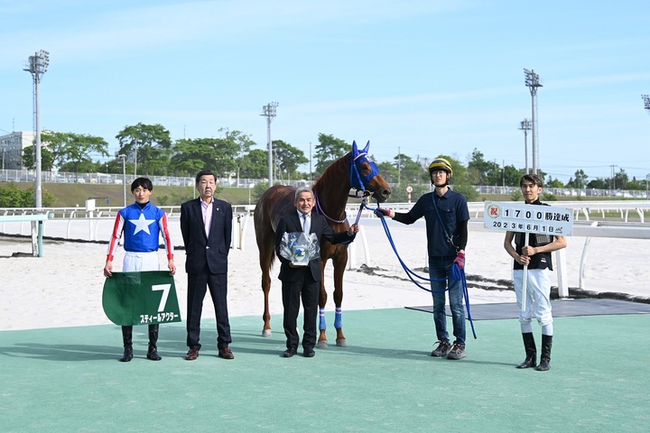 6月1日(木)、門別競馬 第3Rでスティールアクターが1着となり、管理する角川秀樹調教師は1,700勝(10,269出走)を達成しました。