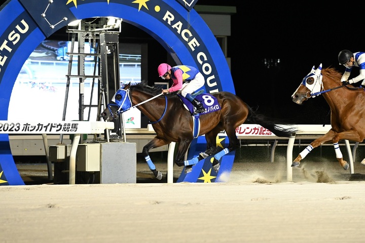 本日のメイン競走、楽天競馬杯 第60回 赤レンガ記念〔H3〕(サトノダイヤモンド賞)[ダート2,000m(外) 曇・良]が行われ、5番人気ハセノパイロが2着サンビュートに3/4馬身差をつけて優勝しました(タイム:2.09.2)。