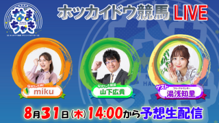 YouTube【公式】 ホッカイドウ競馬「なまちゃきLIVE」のゲストの変更について(8月31日)