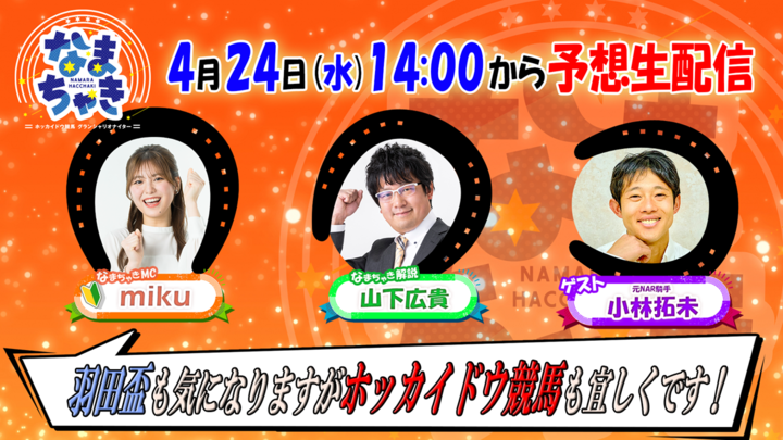 YouTube【公式】 ホッカイドウ競馬「なまちゃきLIVE」のゲスト紹介(4月24日・25日)