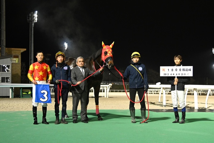4月25日(木)、門別競馬 第10Rでベルピットが1着となり、管理する角川秀樹調教師は1,800勝(10,857出走)を達成しました。