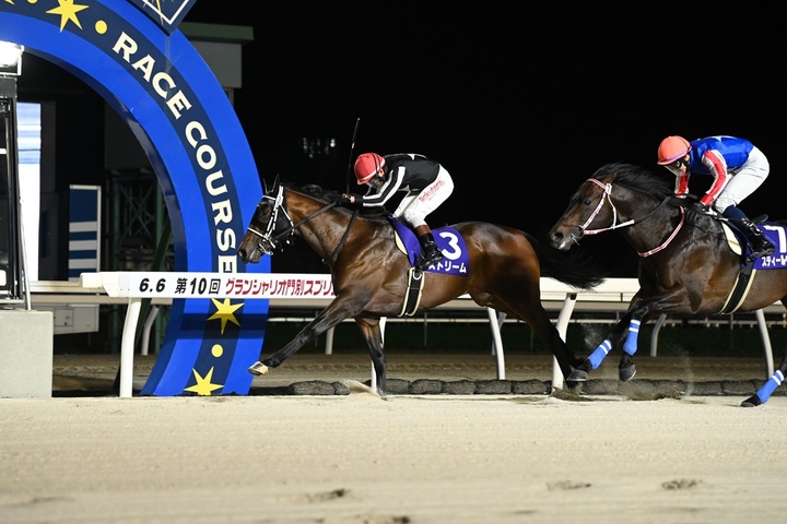 また、同馬を管理する田中淳司調教師はグランシャリオ門別スプリント5勝目(最多)、騎乗した岩橋勇二騎手はグランシャリオ門別スプリント3勝目(最多タイ)となりました。