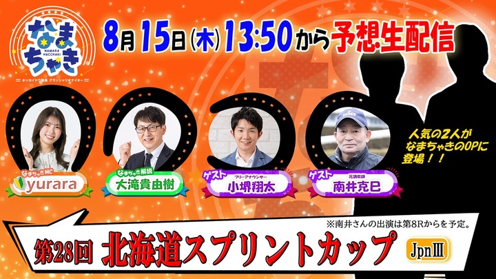 YouTube【公式】 ホッカイドウ競馬「なまちゃきLIVE」のゲスト紹介(8月14日、15日)