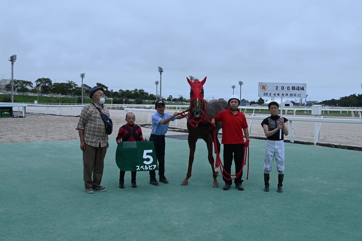 8月29日(木)、門別競馬 第3Rでスペルビアが1着となり、管理する千葉津代士調教師は200勝(2,385出走)を達成しました。