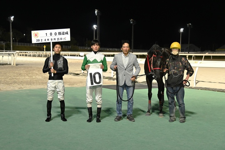 9月25日(水)、門別競馬 第9Rでヨンプクが1着となり、管理する黒川智貴調教師は100勝(1,604出走)を達成しました。
