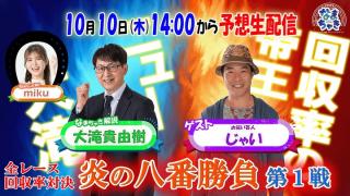第1戦のゲストは、回収率の帝王ことじゃいさんが出演。最初からラスボスとなるゲストの登場に「ニュー大滝」こと大滝貴由樹さんがどう立ち回るのか!?乞うご期待ください。