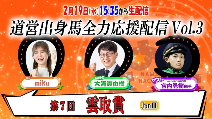 2月19日(水)15:35頃~生配信! 第7回雲取賞(JpnⅢ)