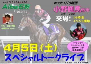 Aiba石狩イベントについて(4月5日) イベント 2025.03.31 Aiba石狩では、4月5日(土)にホッカイドウ競馬小野楓馬騎手が来場し、スペシャルトークライブを行いますので、皆さまぜひお越しください。