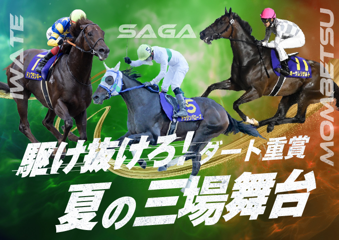 この度、夏のダートグレード競走を盛り上げるべくホッカイドウ競馬、岩手競馬、佐賀競馬の3場でダートグレード競走のコラボキャンペーンを実施!