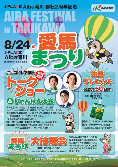 Aiba滝川が移転後2周年を迎えることから、「愛馬まつり」を開催します。