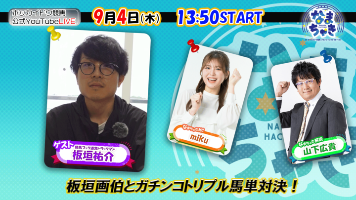 YouTube【公式】 ホッカイドウ競馬チャンネル「なまちゃきLIVE」のゲスト紹介(9月4日)