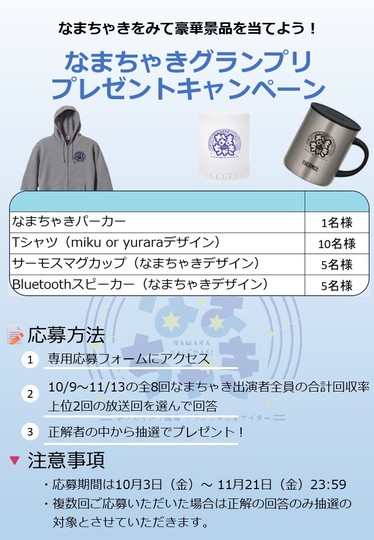 今回は、10月9日の「なまちゃきLIVE」の出演者を発表します。