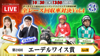 10月30日のメインレースは唯一の2歳牝馬限定ダートグレードエーデルワイス賞!ゲストはレジェンドジョッキーの的場文男さん、宮崎光行さんのお二人に出演いただきます!